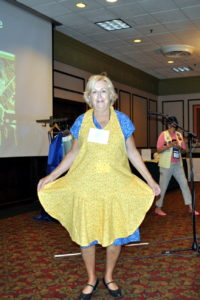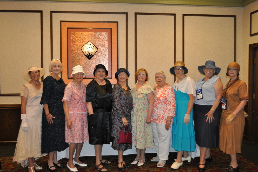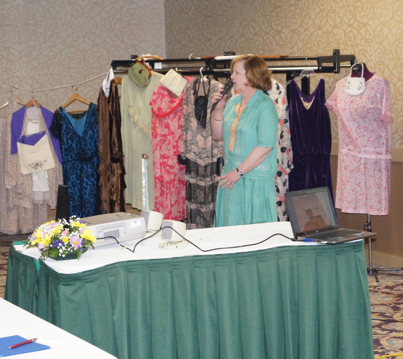 The Fashion committee presented their seminar on 1928 fashions at the Membership meet in Joliet on April 11,2015.  After a review of the historical events that occurred in the year 1928, there was a presentation of the characteristics of the dresses that were worn in 1928.  The committee members then modeled their original and reproduction dresses from the year 1928.  During this seminar the committee also rolled out their new patterns that are now available for purchase.    A fashion swap meet followed the seminar presentation.