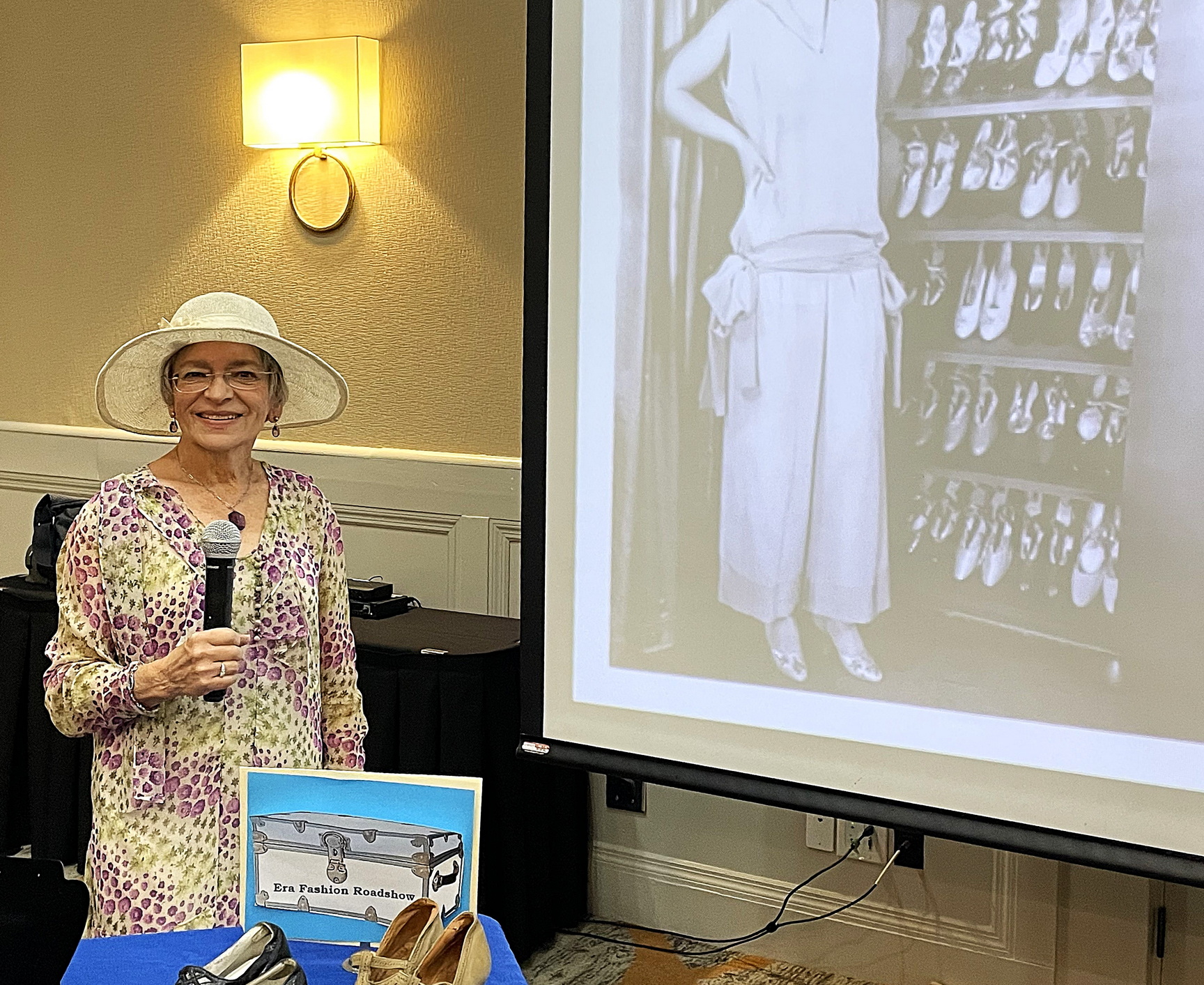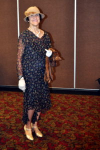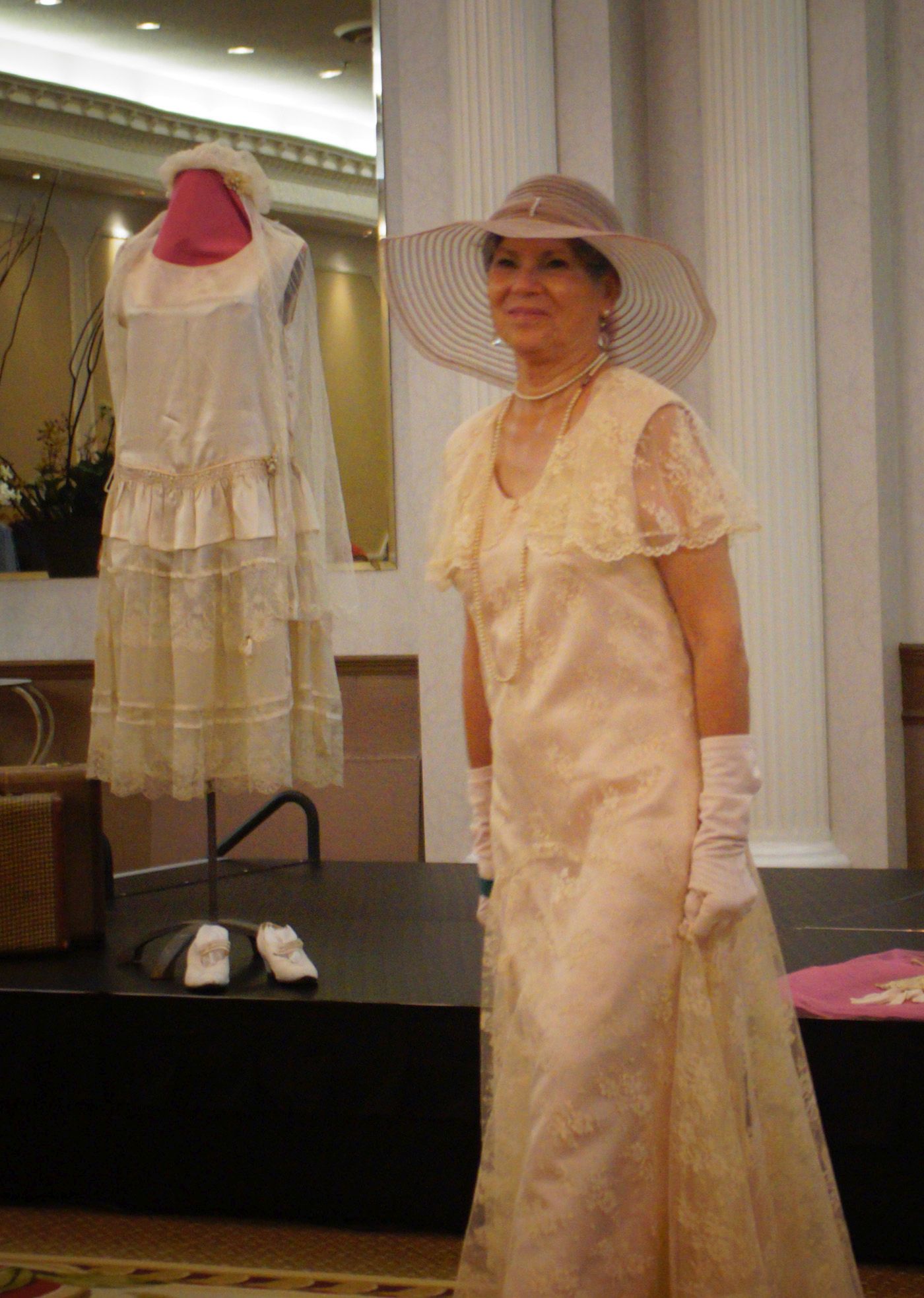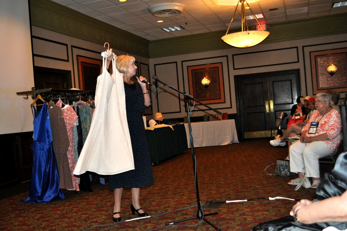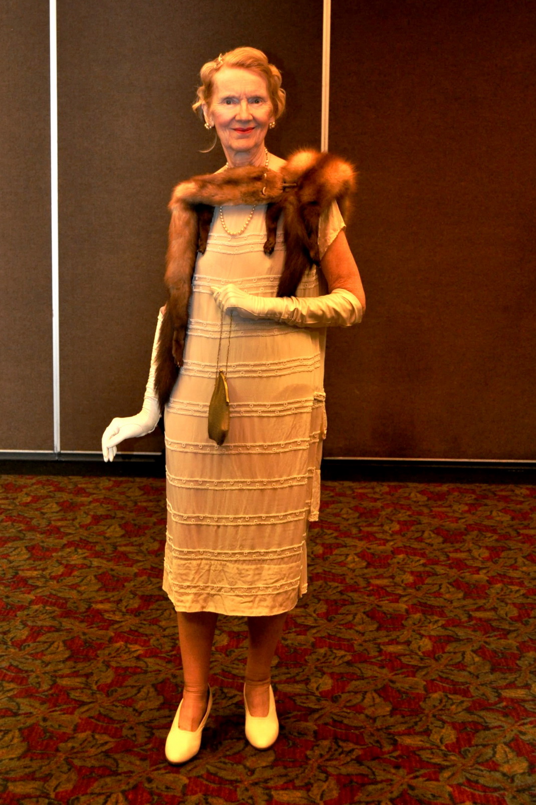 The seminar began with a historical overview of the period and then focused on women’s fashions of the era.  Particular attention was given to a discussion of the difference of 1928 and 1929.  One of the distinguishing marks is that the “waistline” was moving to the top of the hip bone.