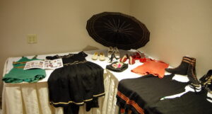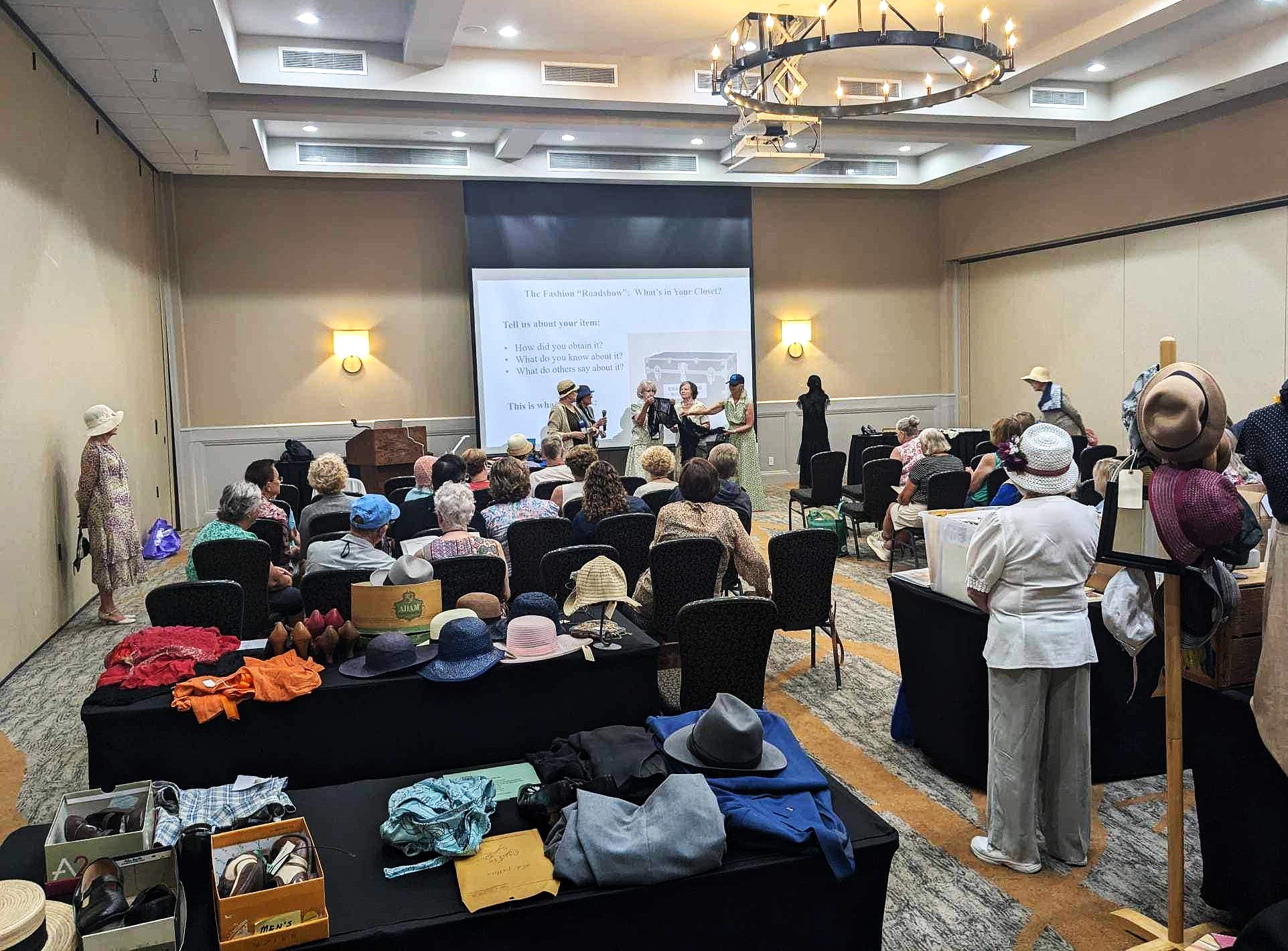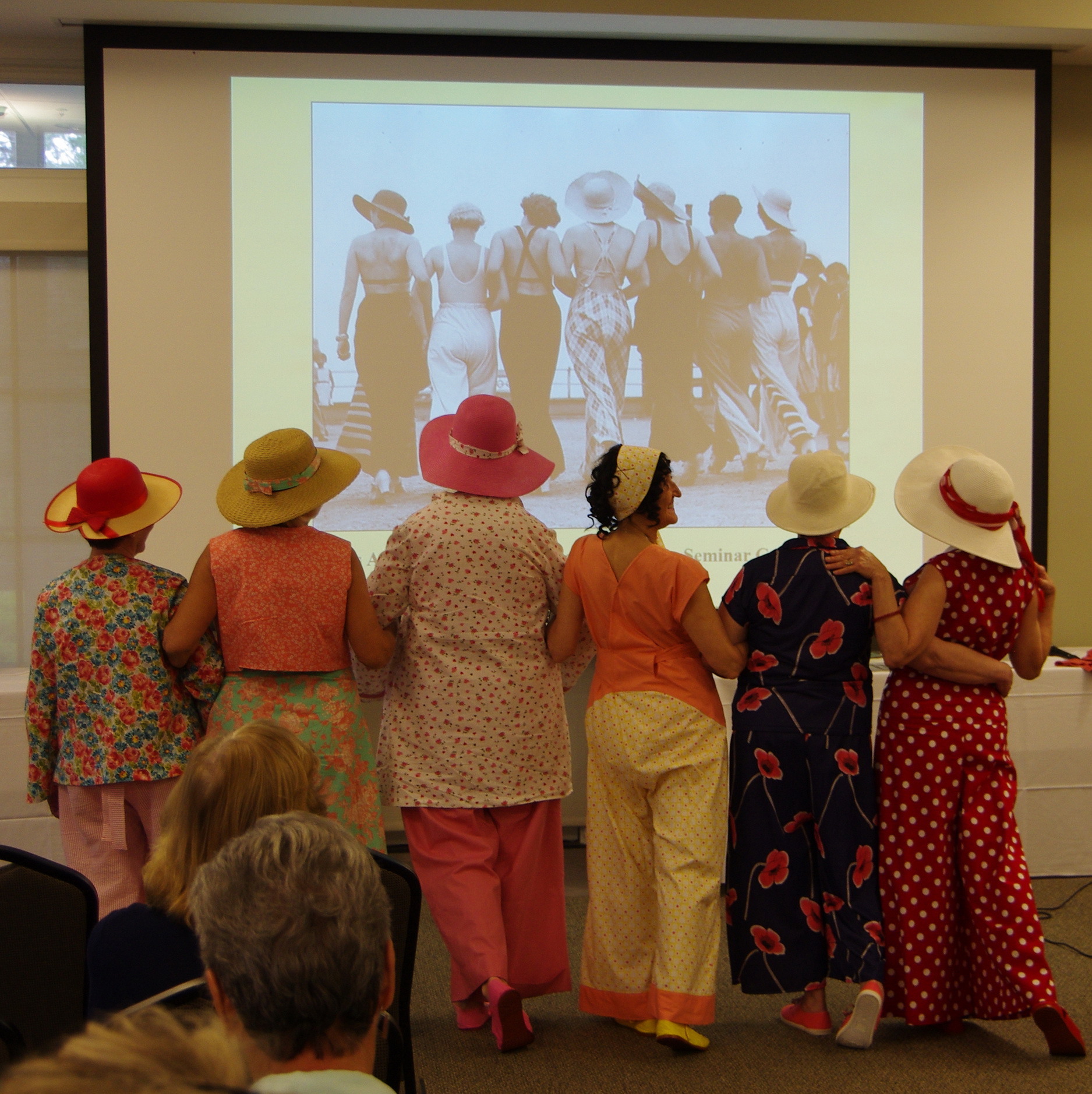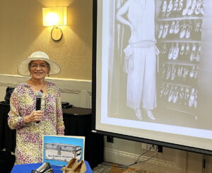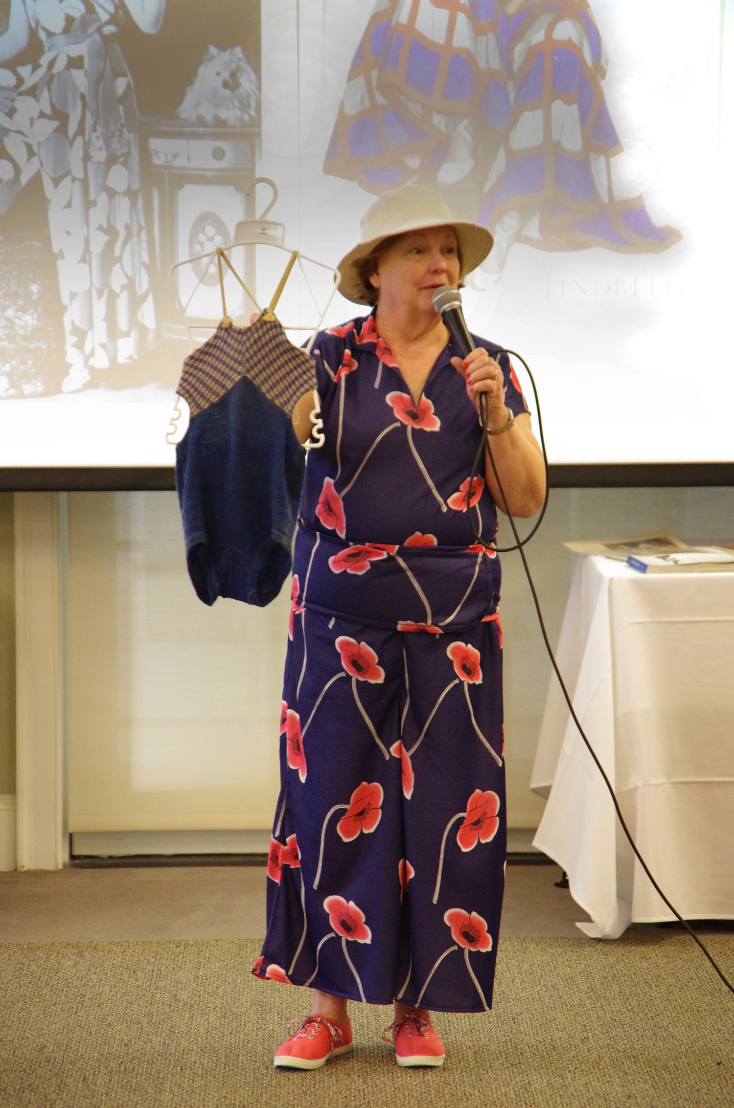 The seminar began with a historical overview of the period and then focused on women’s fashions of the era.  Particular attention was given to a discussion of the difference of 1928 and 1929.  One of the distinguishing marks is that the “waistline” was moving to the top of the hip bone.
