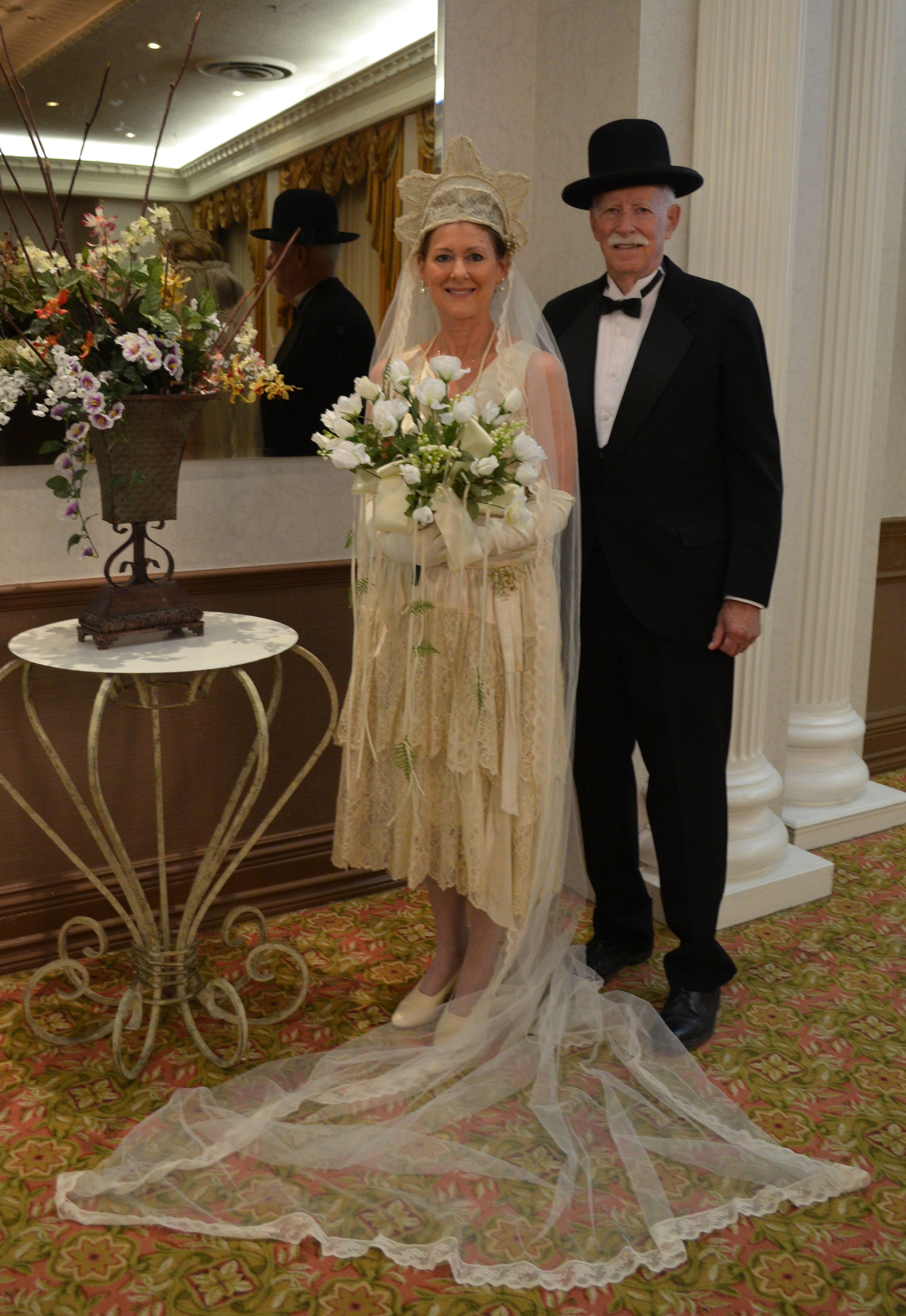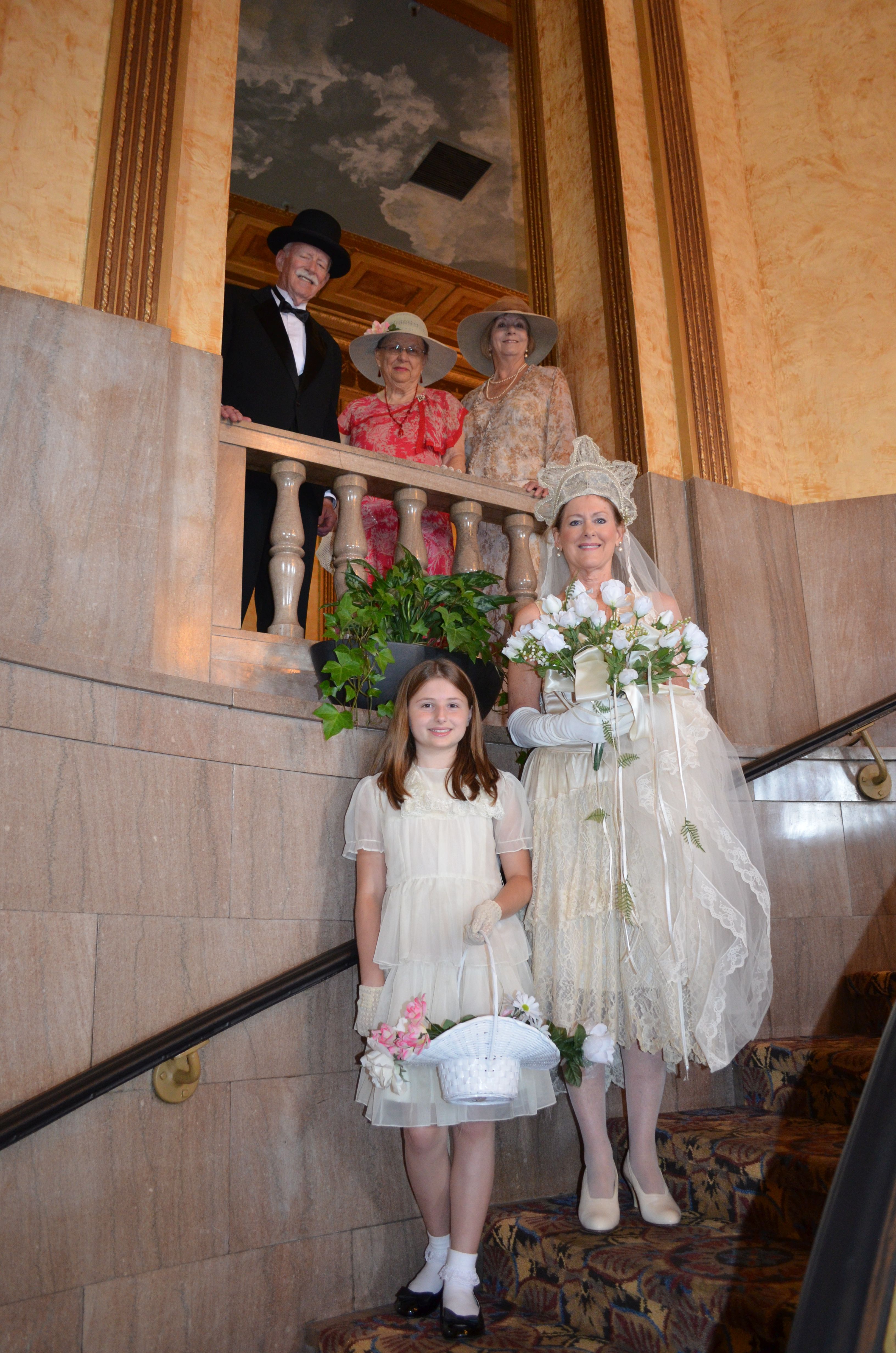 Here comes the bride.  Jackie Peinert wears the original 1929 wedding dress worn by Mary Markes’ mother.