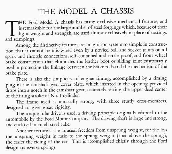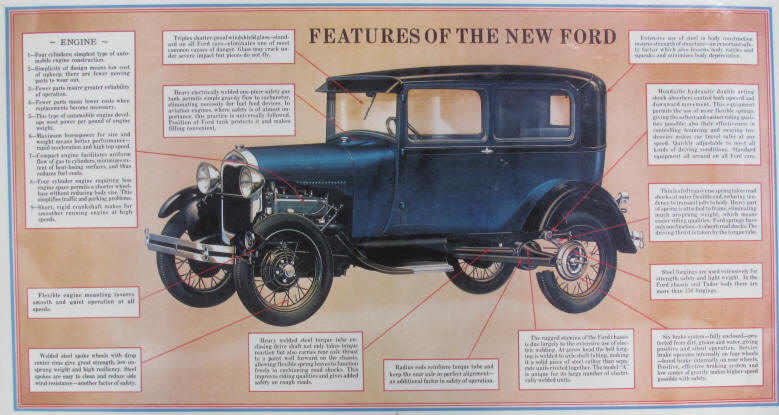 The information contained within this section of the MARC Web Site was gathered from many sources. The information in general reflects original Ford advertising data. It is not intended to be all-inclusive nor does it reflect all design changes. The intent is to provide some general information regarding the Features of the New Ford. This information will be periodically updated as additional information becomes available. There are several very informative books and literature that provide more detailed information available to the reader through the MARC Office or various Model A parts dealers.