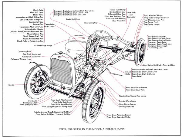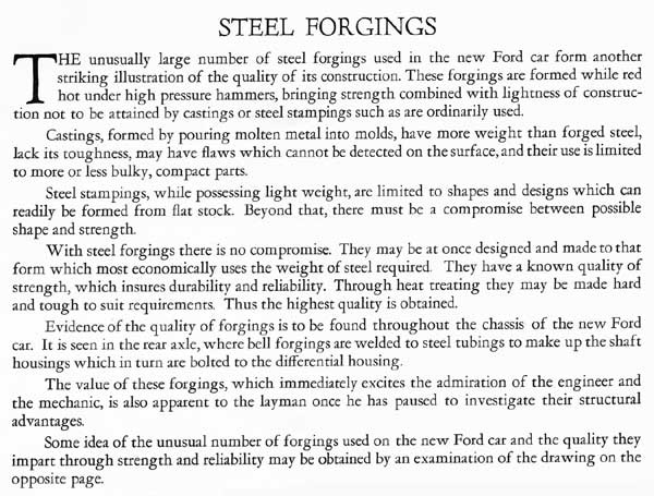 Steel forgings are used extensively for strength, safety and light weight In the Ford chassis and Tudor body there are more than 150 forgings