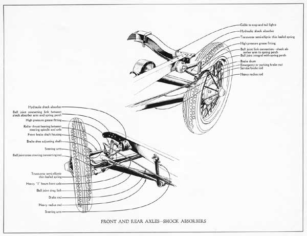 Heavy welded steel torque tube enclosing drive shaft not only takes torque reaction but also carries rear axel thrust to a point well forward on the chassis, allowing flexible spring leaves to function freely in cushioning road shocks This improves riding qualities and gives added safety on rough roads